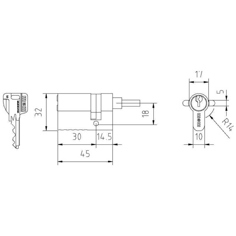 - Cilindro perfil con 5 pitones para cerradura de embutir con pomo modelo 1561.