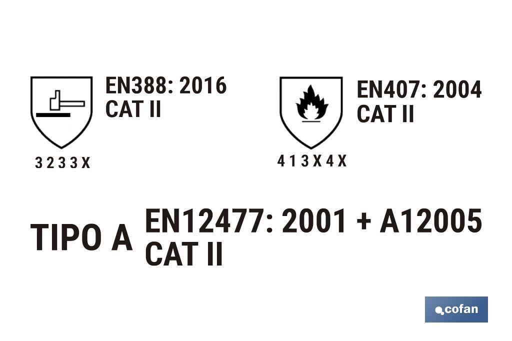Guante de soldador en piel de serraje UNE-EN407-2004 y EN12477-2001 con fibras largas e interior forrado. Usos en trabajos de soldadura poco agresivos, mantenimiento en general y trabajos mecánicos. Talla única (10) con y sin blíster, además, tambien en formato unitario.