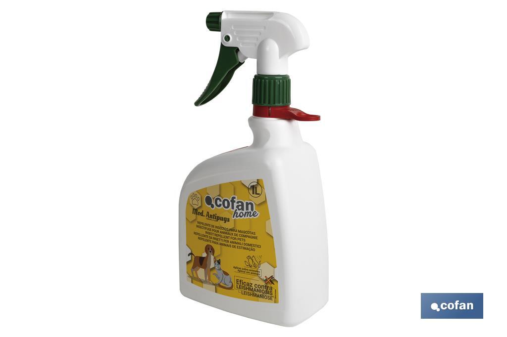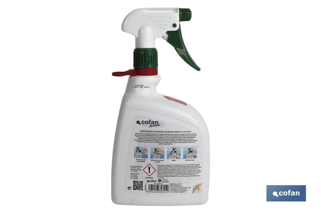 Repelente natural de insectos formulado con aceite de neem y lavandín para aplicar por vía tópica sobre los animales. Crea un efecto burbuja, sin toxicidad para el animal. Su uso frecuente repele de forma efectiva las picaduras de mosquitos (género Culicoides, transmisores de la enfermedad de la leishmaniosis, lengua azul, peste equina), tábanos, Simúlidos (mosca negra), moscas (mosca común, mosca de los establos, etc.), pulgas, ácaros (Dermanyssus gallinae) y garrapatas. Eficaz contra leishmaniosis. Capacidad de 1 litro.
