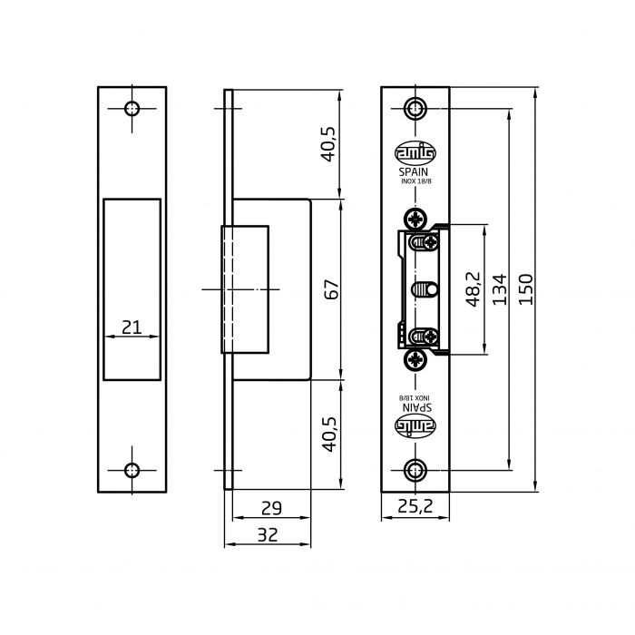 DETALLES: Incluye bobina de 8-12 V de corriente alterna. Amperaje: 1,1 A. Medidas: 150 x 25 x 3 mm. Fabricado en acero inoxidable 18/8, un material que destaca por su dureza, resistencia a la tracción y larga vida útil, además de ser uno de los metales que ofrece mayor resistencia frente al óxido y la corrosión.
