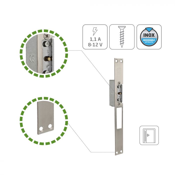 DETALLES: Incluye bobina de 8-12 V de corriente alterna. Amperaje: 1,1 A. Medidas: 250 x 25 x 3 mm. Fabricado en acero inoxidable 18/8, un material que destaca por su dureza, resistencia a la tracción y larga vida útil, además de ser uno de los metales que ofrece mayor resistencia frente al óxido y la corrosión.
