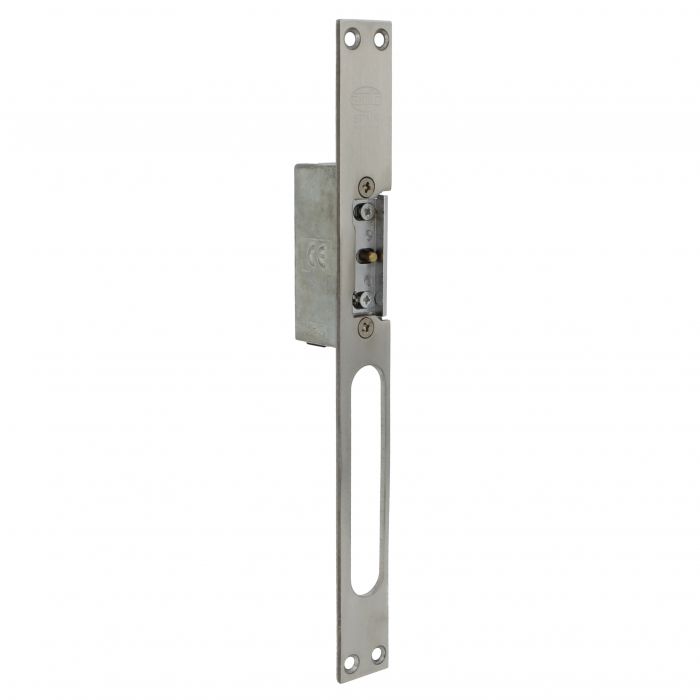 ABREPUERTAS ELÉCTRICO DE EMBUTIR: También llamado trinco eléctrico. Posee frente con memoria, inhibidor o palanca de desbloqueo y cerradero regulable. Es un dispositivo electromecánico que controla a distancia la apertura de la puerta desde el telefonillo en viviendas o desde un punto de control determinado.