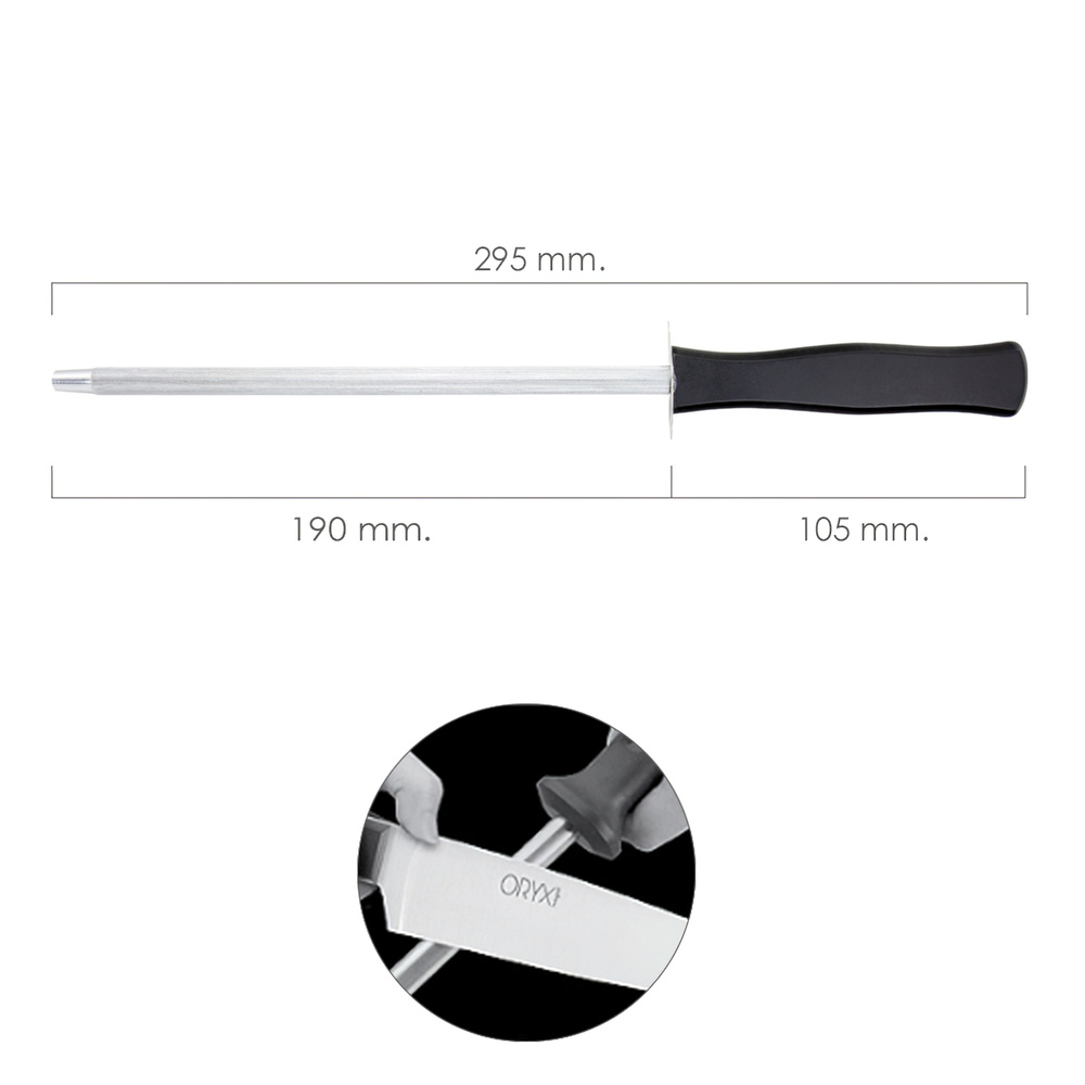 Chaira afiladora cocina - Bonito y delicado diseño para la serie Grenoble, ademas de una magnifica selección para el uso habitual en nuestra cocina nos brinda una larga duración y maxima resistencia. - Medida Chaira/ hoja: 29 / 19 cm. - Mango realizado en Phenolkraft, una resina que proporciona una alta durabilidad y resistencia. - Remaches de duraluminio de alta calidad. - Puede ser lavado en el lavavajillas. - Articulo tambien conocido como afliador cuchillos, tijeras.