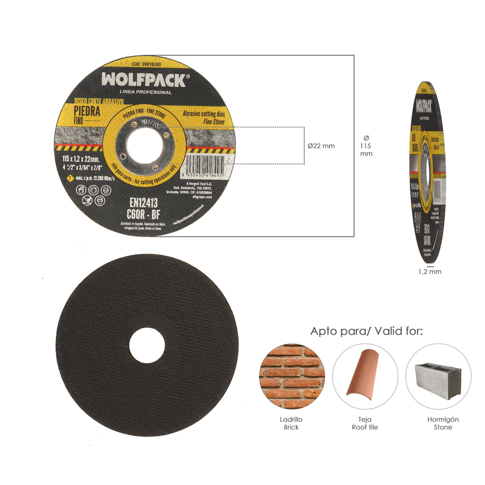 Disco Corte Abrasivo Piedra fino - Medidas: Diámetro exterior / anillo / grosor: Ø115 / Ø22 / 1,2 mm - Estructura interna de mallas de fibra de vidrio para una mayor resistencia y durabilidad, Anillo interno de mayor grosor para mejor sujeción a la máquina, - Compatible con todas las radiales con sistema convencional de todas las marcas, - Materias primas de la mejor calidad para un uso profesional y duradero, - Articulo también conocido como: discos cortes abrasivos, disco de corte, disco de radial, disco amoladora,