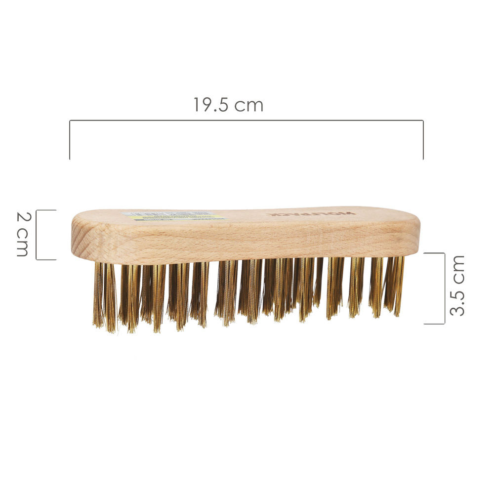 Cepillo manual acero latonado fundicion - Medidas: 19,5 x 5,5 cm. - Fabricado en madera. - Púas de acero latonado. - Agarre ergonómico. - Usos: > pulido de superficies oxidadas en general. > pulido de escoria de soldadura. > eliminación de barnices. > eliminación de pequeñas incrustaciones en general. - Artículo también conocido como cepillo abrasivo, cepillo acero, cepillo fundición, cepillo acero inoxidable, capillo acero latonado, cepillo manual, etc.