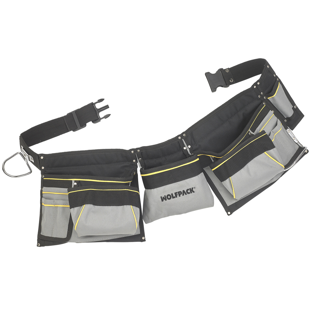 Bolsa encofrador doble con cinturón. - Realizada en nylon para aportarle mayor duración. - Diseño práctico con múltiples compartimentos y colgador para martillo. - Bolsillos diseñados para multiples tipos de herramientas. - Incluye cinturón ajustable con hebilla de click. - Ideal para electricistas, carpinteros, artesanos, talleres, técnicos de climatización, mecánizos, fontaneros, jardineros, etc. - Artículo también conocido como bolsa herramientas, riñonera portaherramientas, riñonera electricista, bolsa trabajo profesional, bolsa portaherramientas, cinturón herramientas, etc.