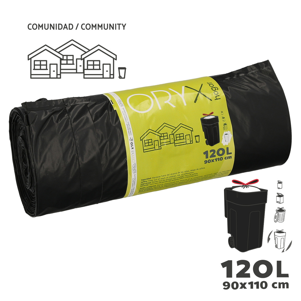 Bolsa Basura Cierre Facil - Capacidad: 120 Litros - Medidas: 90x110 cm. - Rollo 10 Bolsas. - Autocierre. - Antigoteo. - 3 capas. - Ideal para papelera cocina. - Mantener fuera del alcance de los niños, riesgo de asfixia. - Recicle depositando sus residuos en el contenedor apropiado según su naturaleza. - Artículo también conocido como bolsa, bolsa basura, bolsa residuos, papelera, papelera baño, bolsa basura cordon, bolsa basura asas, bolsa basura pequeña, bolsa basura blanca, etc.
