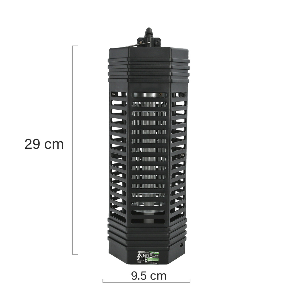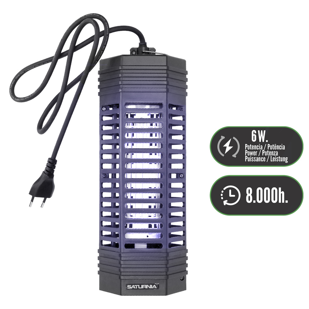 Exterminador De Insectos. - Potencia 6W - lámpara fluorescente de 6 W. - Medidas: 9.50 x 29(Alt.) cm. - Con bandeja recoge insectos de facil limpieza. - Radio de accion de 20 m2 - Para insectos comunes como moscas, mosquistos, etc. Articulo también conocido como: repele mosquistos, repelente mosquitos, mata insectos.