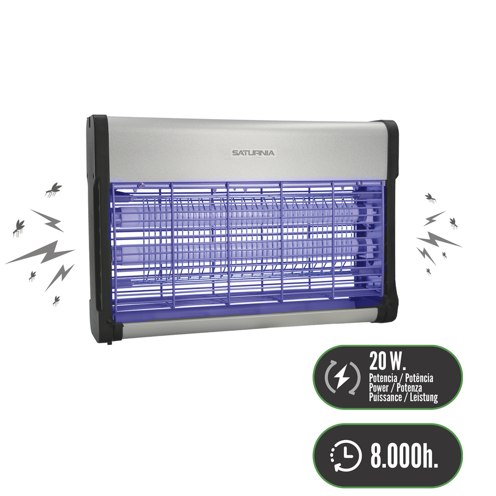Exterminador Electrico De Insectos - Potencia: 20 W - Medidas: 40 x 9 x 33 (Alt,) cm, - 2 lámpara fluorescente de 10 W, - Con bandeja recoge insectos de facil limpieza, - Radio de accion de 80 m2, Para insectos comunes como moscas, mosquistos, etc,