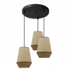 Plafón serie CAMPANA de color SACO/MARRON. Posee tres portalámparas E27. Bombillas no incluidas. Diseño moderno a la par que elegante, se pueden regular a distintas alturas sus tres colgantes dándole un toque sofisticado a la estancia que decora. Sus pantallas están formadas por dos cuerpos combinando colores y texturas en textil y enfilaje y armazón metálico de color negro. Sus dimensiones regulables en altura, son de 38<,120x36x36 centímetros. En esta serie podemos encontrar regletas con 3 colgantes, colgante de 30 centímetros de diámetro, dos tamaños diferentes de sobremesas y los plafones con 3 colgantes, todos realizados en tela de saco combinada con negro o marrón.