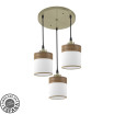 Plafón de diseño de la serie CLOE de color CUERO con pantalla BLANCA/MADERA OSCURA. Realizado en metal y textil. De estilo moderno, presenta en sus pantallas un contraste de colores, resultando muy original y decorativo para iluminar en dormitorios, comedores, salones y zonas de trabajo, creando un ambiente diferente. Posee tres portalámparas E27. Bombillas no incluidas. Con altura regulable, el plafón tiene unas dimensiones de 43<,105x42x42 centímetros. En esta serie, encontramos a juego los colgantes de 40 y 50 centímetros de diámetro, regleta de 3 luces, plafón de 3 luces, lámparas de 2, 3 y 4 luces, el pie de salón, y un tamaño de sobremesa, todas las versiones combinan el color blanco con los colores de madera: madera clara, madera oscura, madera gris y madera negra. Una amplia gama para elegir el que mejor se adapte a su decoración dando un toque de color a la estancia que ilumina.
