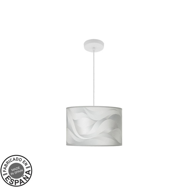 Color:Blanco/ola gris|Peso Neto:485|Peso Bruto:810|Medidas embalaje:22x34x34|Dimensiones (alto x ancho x fondo):35<111X30X30|Material:Metal / Textil|Voltaje:220-240 V|Uso (Interior/Exterior):Recomendado para interiores|Bombillas incluidas:No|Proyección de la luz:Luz difusa general|Tipo de instalación:En superficie|Uso (Doméstico/Profesional):Doméstico|Origen de fabricación:Fabricado en España|Diámetro:30|Difusor:Pantalla|Material Pantalla:Textil|Material Armazón:Metal|Color Pantalla:Gris|Color Armazón:Blanco|Portalámparas:1xE27|Certificado CE:true|Certificado Reciclaje:true