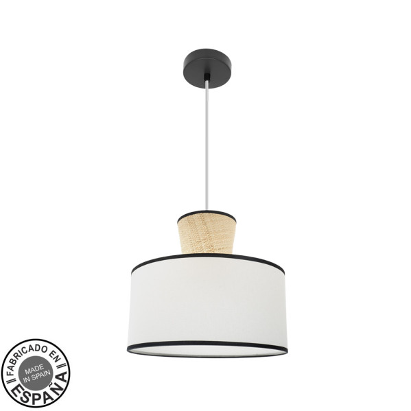 Color:Negro/Blanco/Natural|Peso Neto:610|Dimensiones (alto x ancho x fondo):57<127X40X40|Material:Metal/Cañizo/Textil|Voltaje:220-240 V|Uso (Interior/Exterior):Recomendado para interiores|Bombillas incluidas:No|Proyección de la luz:Luz difusa general|Tipo de instalación:En superficie|Uso (Doméstico/Profesional):Doméstico|Origen de fabricación:Fabricado en España|Diámetro:40|Difusor:Pantalla|Material Pantalla:Textil|Material Armazón:Metal|Color Pantalla:Blanco/Negro/Natural|Color Armazón:Negro|Portalámparas:1xE27|Certificado CE:true|Certificado Reciclaje:true|Tamaño:M