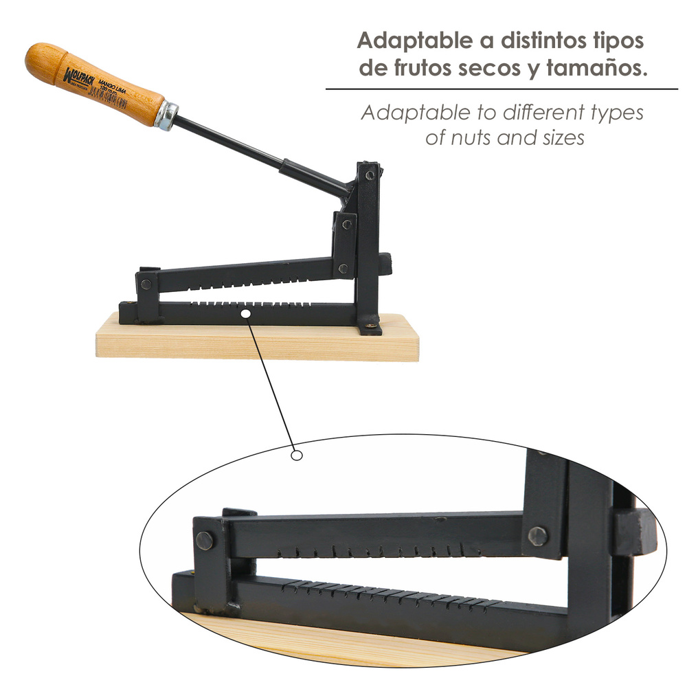 Máquina Parte Almendras Artesanal - Sistema de muelle con palanca diseñado para partir frutos secos rápidamente sin esfuerzo alguno. - Adaptable a distintos tipos de frutos secos y tamaños. - Fabricado en hierro y madera. - Artículo también conocido como cascanueces, partidor, rompealmendras, partidor nueces, partidor almendras, etc.